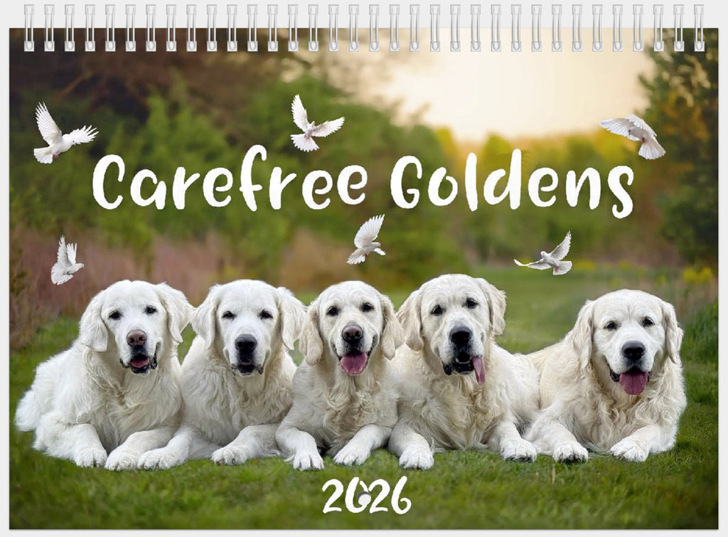 STAY ORGANIZED: 2026 Carefree Goldens Wall Calendar! We know you’ll enjoy flipping through 12 months of beautiful Carefree Goldens pictures in this calendar 2026. We love spreading the joy and putting a smile on your face. This beautiful calendar is the perfect gift for any dog lover.